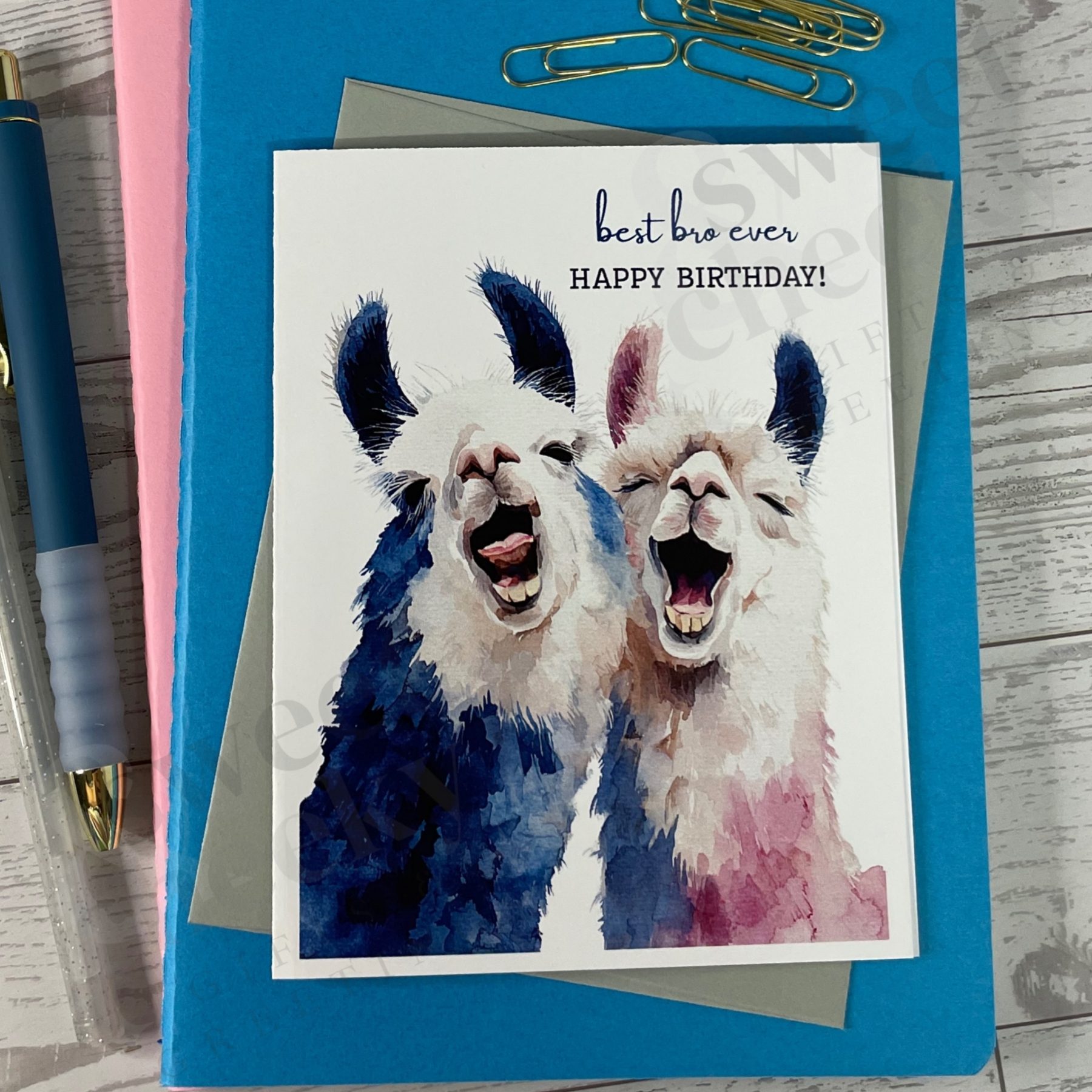 Best Bro Ever – Funny Llama Birthday Greeting Card