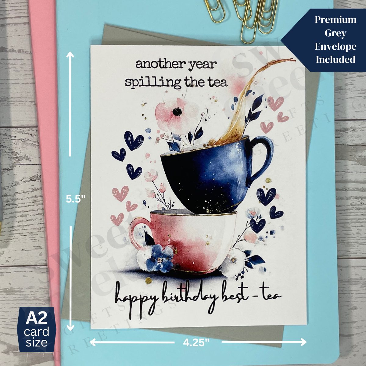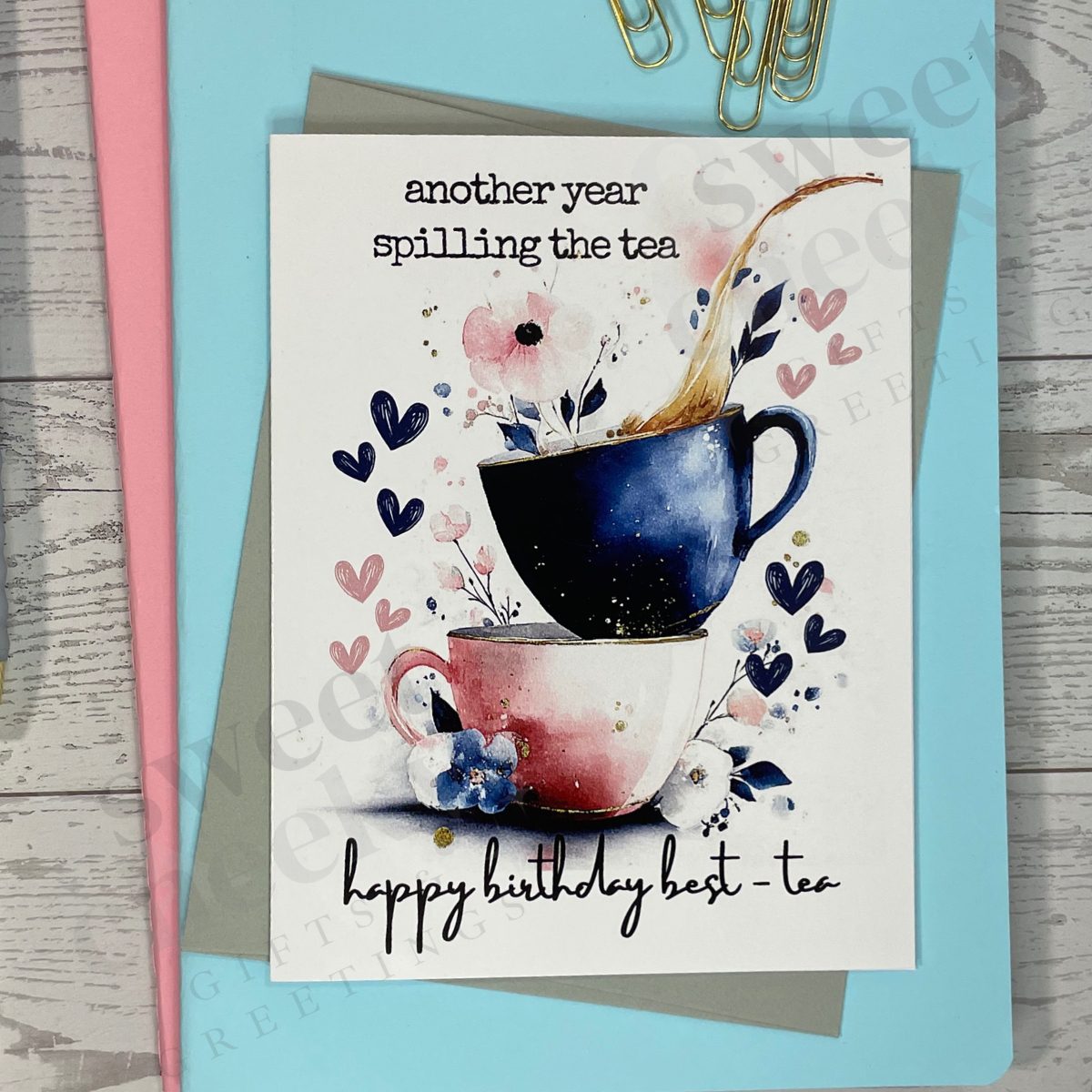 Happy Birthday to My Best-Tea – Spilling Tea Greeting Card