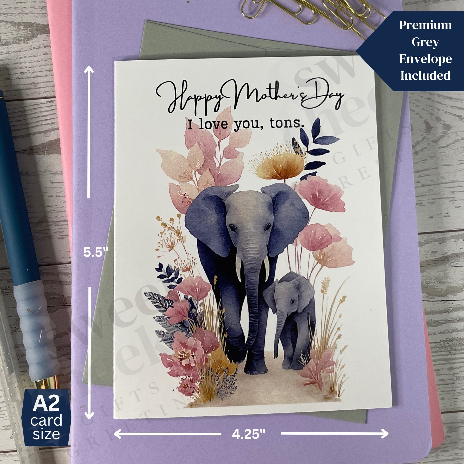 Gentle, sweet, and full of heart! This adorable Mother’s Day card features a loving elephant and her baby, paired with the playful and affectionate message “Happy Mother’s Day, I love you tons.” Perfect for moms who are nurturing, strong, and endlessly loving, this card is a tender way to show your appreciation and celebrate the bond you share. Big hearts, big love, and plenty of charm in every card.