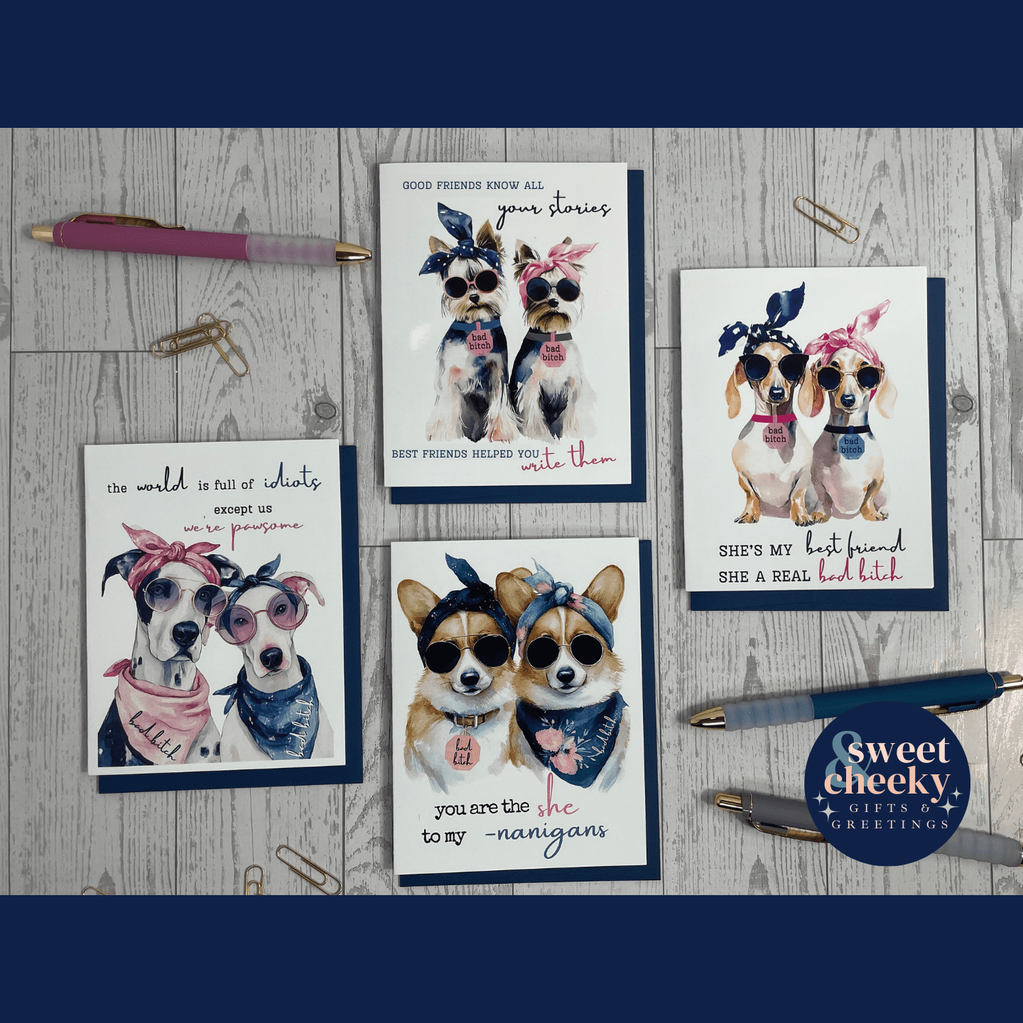 Sassy, feminine and dog-gone cute. These cards are for the best friend who deserves more than a boring birthday card. Get her a message that you love that she’s a bad bitch bestie.