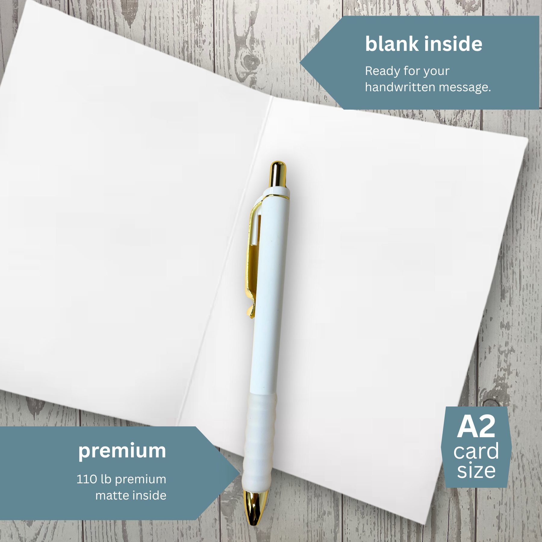 Printed on premium 110 lb. bright white cardstock
