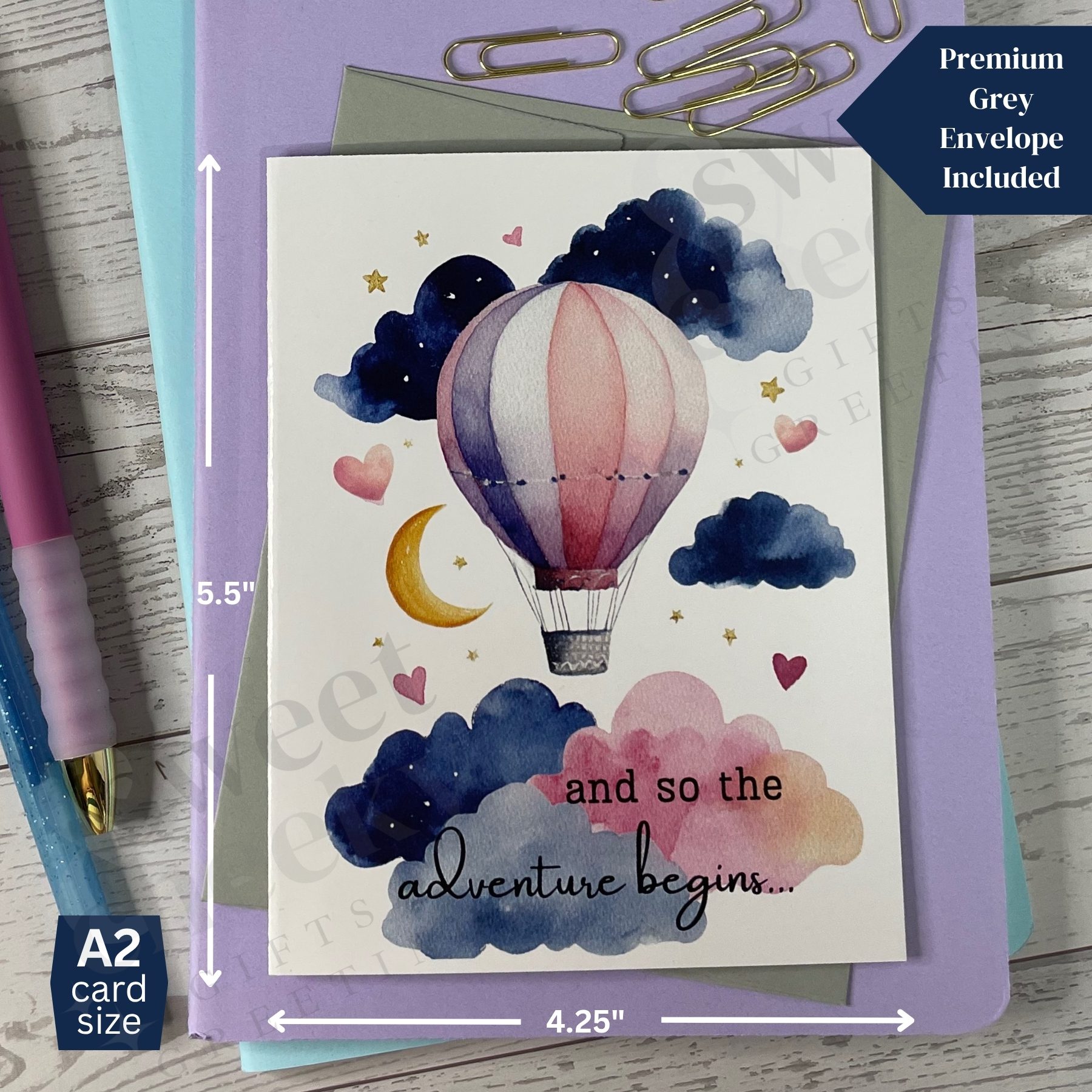 Includes Grey A2 envelope