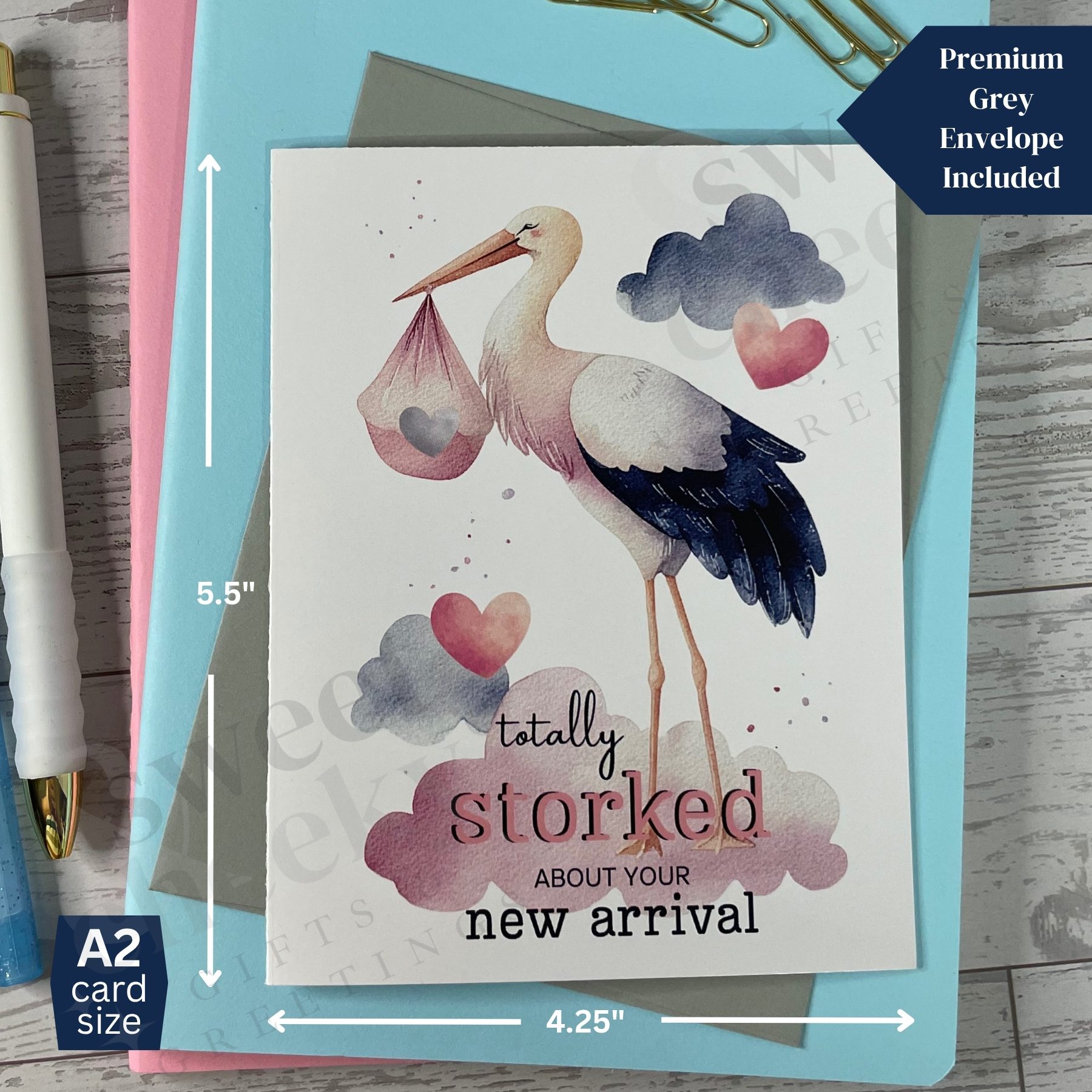 Fresh, bright, and totally stork-tacular! This adorable card featuring a cheerful stork is the perfect way to celebrate the arrival of a new little cutie. Sweet, simple, and full of warmth, it’s a joyful way to send love and congratulations to the proud new parents.
