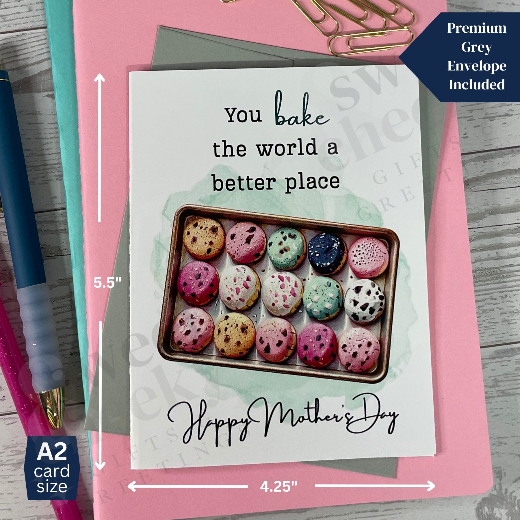 Warm, cozy, and fresh from the heart—this sweet Mother’s Day card features a tray of freshly baked cookies paired with the heartfelt message “You bake the world better.” Perfect for the mom who sprinkles kindness everywhere she goes (and maybe chocolate chips too), it’s a charming way to celebrate the one who always knows how to make life a little sweeter.
